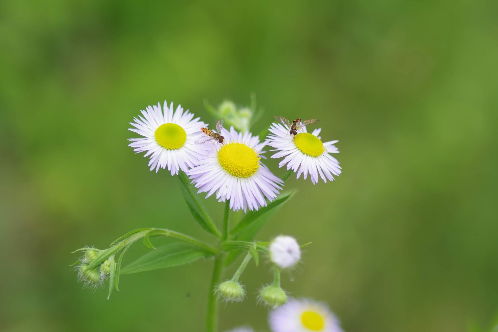 Now for the daisy fleabane, and a great many hover flies: