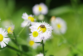 I'm sure you can guess where this story is going. I did not find the caterpillar. I looked all up and down the meadow path, on both sides, looking for that big, brown caterpillar. There's nothing much blooming in the meadow right now, so it's a sea of green, and the caterpillar did stand out a bit (but not enough to keep me from walking right by without seeing it the first time!), so I figured it would be easy to find, but it wasn't there anymore. Either it walked away into the mass of greenery in that meadow, or something ate it. Anyway, as I was looking for the caterpillar I found lots of other bugs, and almost my entire bug photography collection for today was taken in that meadow, probably not even 50 feet of path lined on both sides by walls of green. It was a pretty impressive collection of bugs for such a small space, and I didn't even get pictures of most of them. But here's what I got...