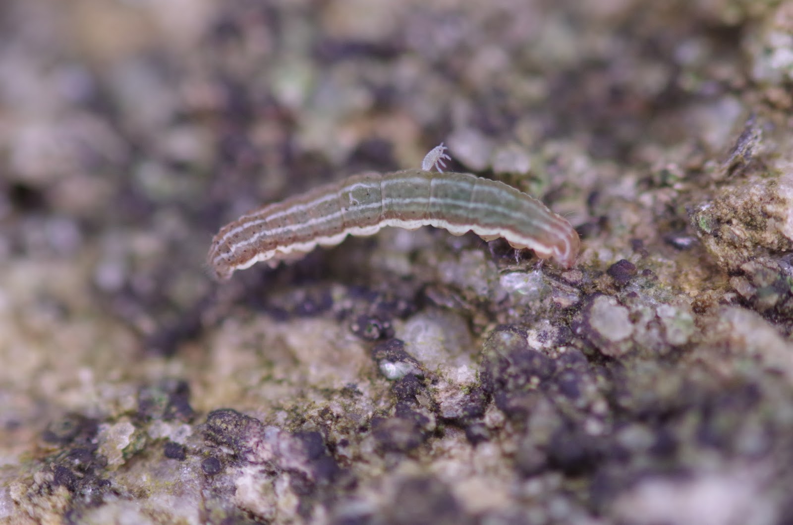 This caterpillar was about half an inch long. It moved like a looper, so I guess it is one, but it has a stockier body than I usually see in loopers. I tried to find it in the book, and didn't see one that looked like it.