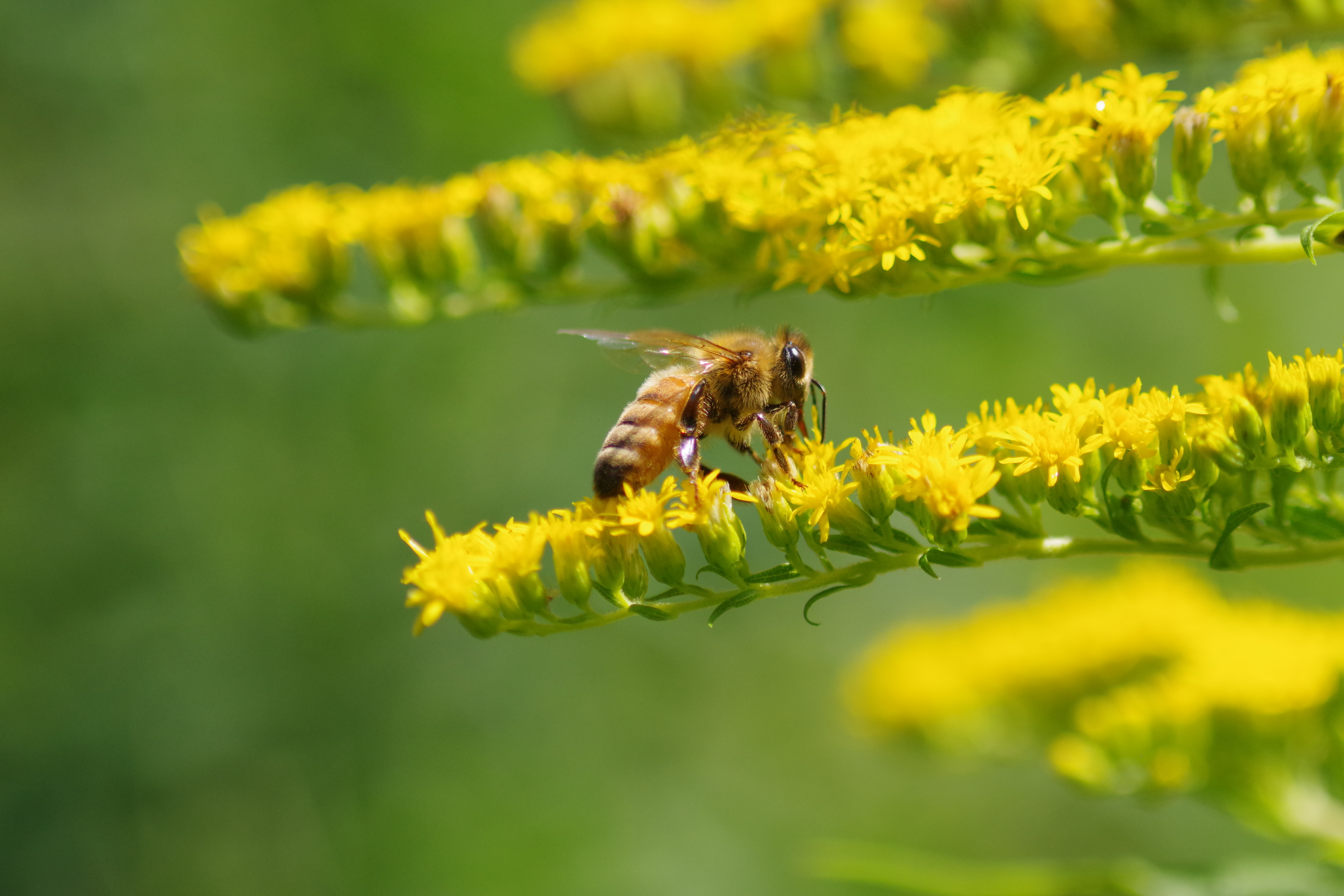 The goldenrod was a hot spot for bugs today, especially honeybees: